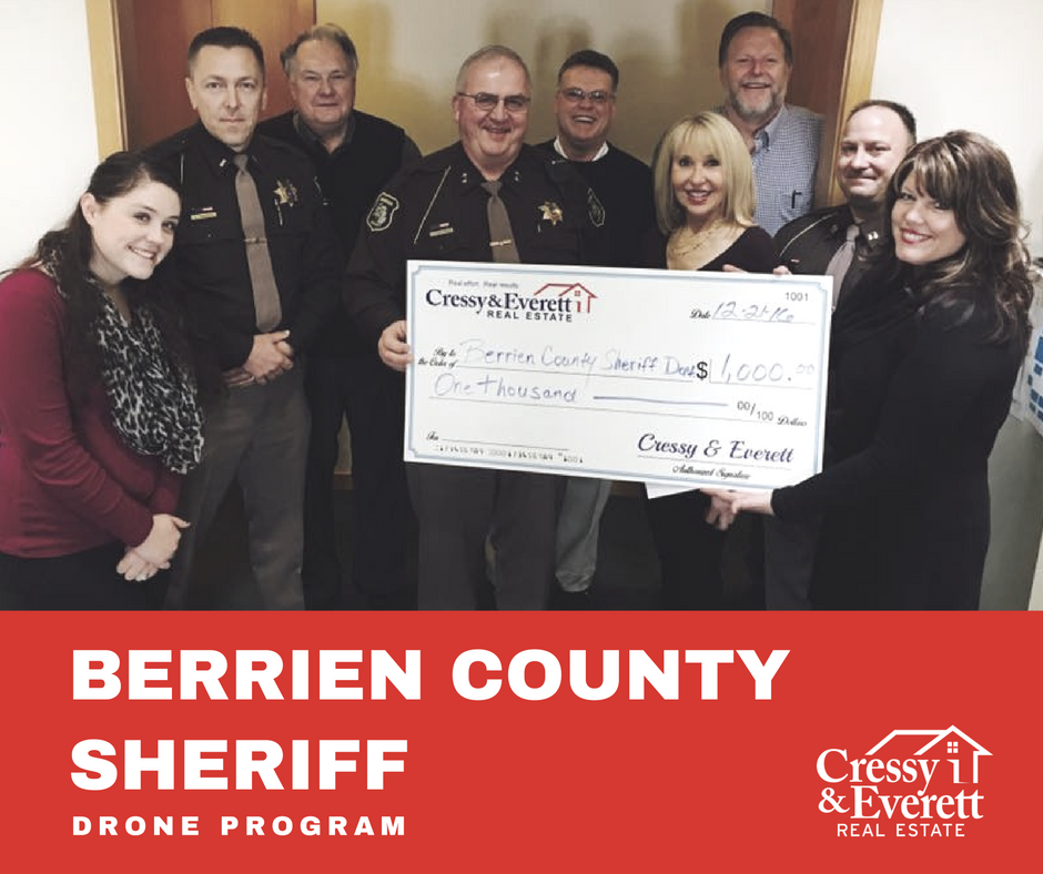 As a real estate company, we understand how important Drone's are to getting a good visual of the surroundings below. The Berrien County Sheriff's Department has implemented a Drone Program for aerial photography of local and interstate roads. The idea is to use the donations from local businesses to upgrade the Drone Program to allow Berrien County Law Enforcement to be better prepared when vehicle emergencies arise. They can fly drones to a location to get a visual of a road emergency to know exactly which law enforcement to dispatch. The goal is to heighten the safety and security of our neighborhoods and improve the quality of life for the residents in Berrien County. Cressy & Everett Real Estate is proud to donate to this worthy Drone Pro...